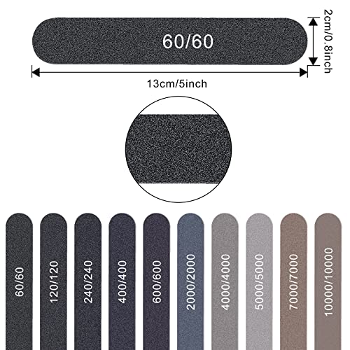Pakketgehalte: met 20 stks flexibele schuurstokken in 10 geassorteerde grutsen: 60/120/240/400/600/2000/4000/5000/7000/10000 grits, voldoende hoeveelheid en verschillende grits kunnen voldoen aan uw slijp- en polijstenbehoeften.