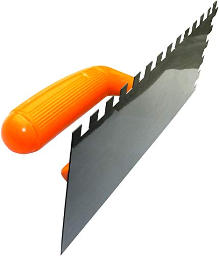 Uitgerust met een zeer comfortabele handgreep, hebt u betere handmatige controle en ongekende controle tijdens het werk. Door zijn optimale prestaties en sterkte wordt de troffel veel gebruikt, de voorkeur en begeerd door professionele ambachtslieden en doe-het-zelvers. De tandspatel wordt gebruikt voor de tegels om lijm, gips, mortel en om oppervlakken te verdelen