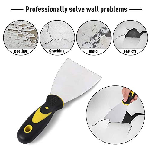 Specification: Spatelset, 4-delige roestvrij stalen schilderspatelset met handgreep kunststof rubber, gipsspatel breedte 50/75/100/125 mm, universele spatel voor het plamuren en afkrassen van verf of behang