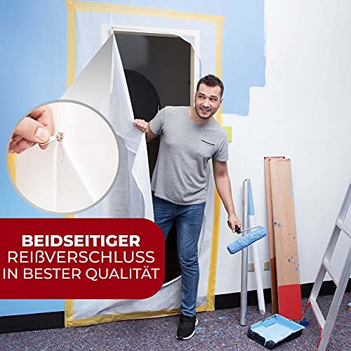 RBMalerbedarf – 1 x stofwerende deur met ritssluiting – 100% stofvrije stofdeur – 2,20 m x 1,10 m stofscherm – ideaal voor uw bouwplaats – vuilvrij & herbruikbaar – schilderaccessoires